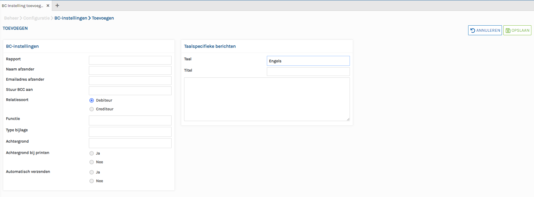 Op dit scherm kunt u verschillende instellingen toevoegen voor rapporten en wie deze moeten ontvangen. Hiervoor moet u contactpersonen instellen bij debiteuren of crediteuren. De soorten die u hier kiest zijn belangrijk. Als iemand de soort heeft die u invult in het vakje “Functie” ontvangt deze persoon dit bestand waar u de instelling voor maakt.