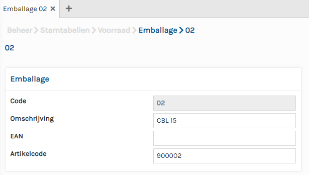 Als tweede moet u bij de algemene gegevens van het artikel de instelling 'Emballage' op ja zetten.