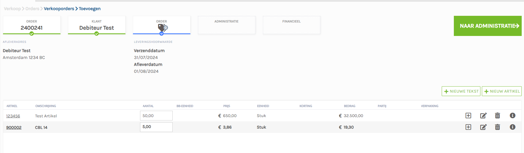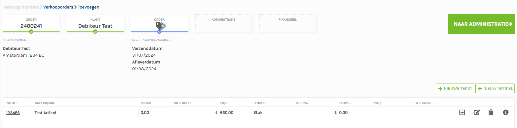 Nadat u dit gedaan heeft en dit heeft opgeslagen word er de volgende keer automatisch emballage toegevoegd nadat u een aantal heeft ingevoerd bij het artikel op de orderregel.