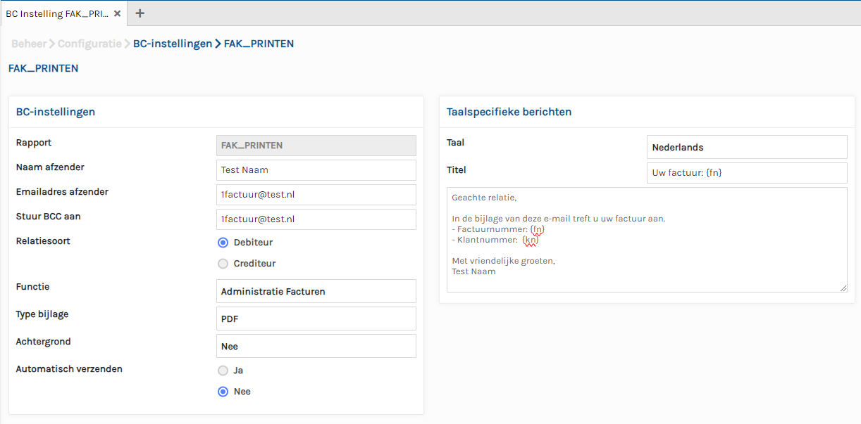 De factuur wordt gemaild naar de contactpersoon met functie AF