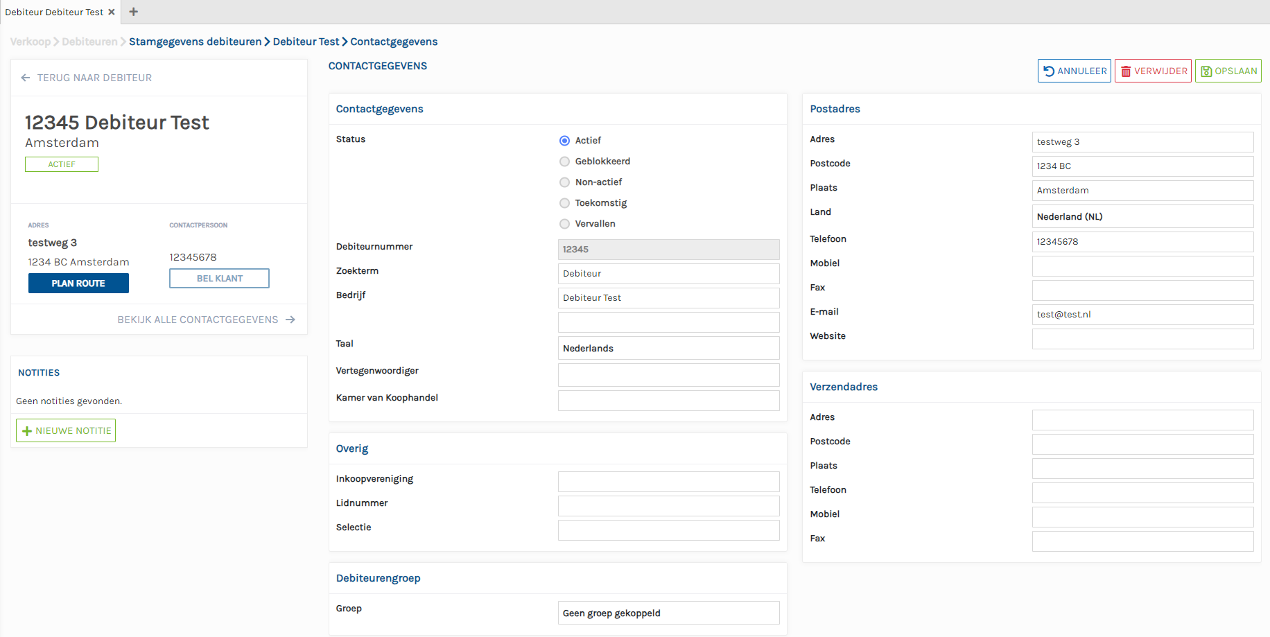Op dit scherm kunt u verschillende contactgegevens van deze debiteur wijzigen of toevoegen.