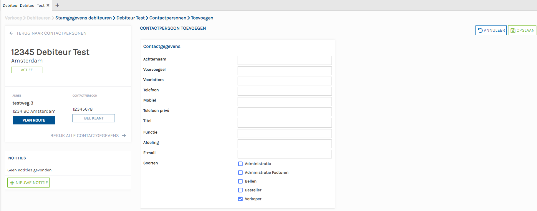 U kunt hier contactpersonen aanmaken voor de debiteur.